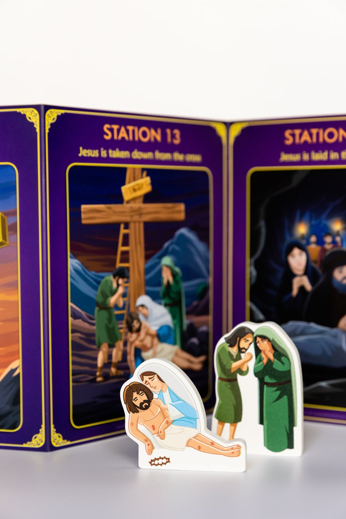 The quiet design means no noisy sound effects, allowing for quiet play while encountering the faith in a deeper way.